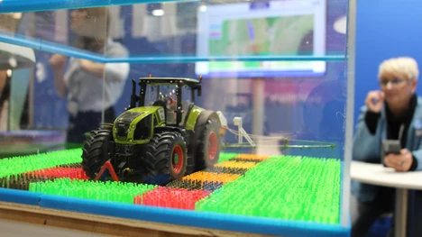 A small tractor on a colourful “field” is right at the front of the booth. Many visitors look puzzled at first, then the employees explain: “The colorful fields symbolize different test plots,” says Marcel Moll from the Chair of Agricultural Mechatronics. “The precision spreader creates the plots, measures them, and determines the optimized nitrogen fertilizer application.” The aim is to bridge the gap between plot tests at research institutions and agricultural practice. The exhibit represents the work on the ecoSchemeN project. The project is researching targeted fertilization on heterogeneous fields. With precision machines, represented here by the small precision spreader, site-specific and highly precise fertilization becomes scalable.